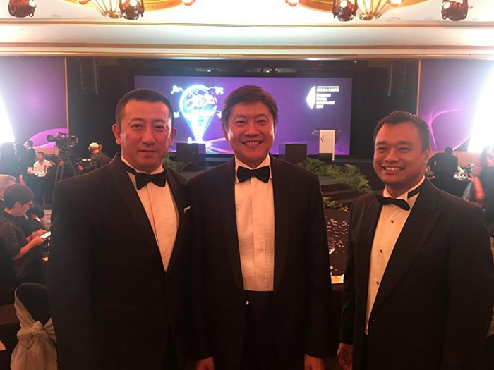 k8凯发新加坡公司执董傅浩代表k8凯发集团领取“中国十大行业领军品牌”奖杯