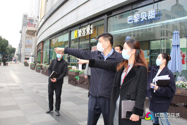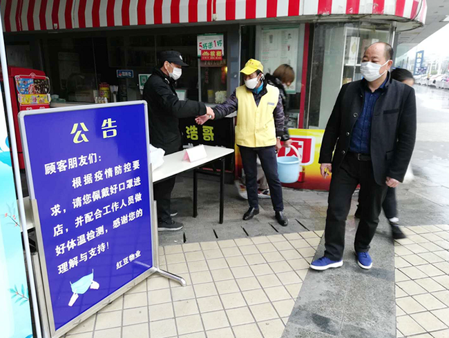 镇江万花城何月明从大年初三起,毅然取消春节,坐车由无锡辗转扬州,再至镇江,只为坚守在战役最前线。他说“如果不到一线来,休息在家也会坐立不安的。” 他建立项目定点定时消毒机制,做好安全保障工作,积极配合项目恢复营业,同时也为商户做好服务,确保他们有序开展复工后的正常经营。